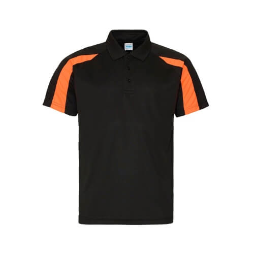 Contrast Cool Polo - Jet Black - Electric Orange.