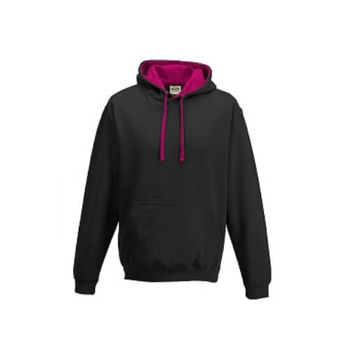 Deze 2 kleuren Hoodie of Varsity Hoodie heeft een kwaliteit van 80% katoen en 20% polyester.Heeft ruime kangoeroe zakken om een draad van een koptelefoon of oortjes doorheen te halen.In de kraag zitten verborgen lusjes om de oordopjes aan te hangen zodat je deze altijd bij de hand hebt. De Hoodie is afgewerkt met een geribbelde zoom en manchet en is leverbaar vanaf maat XS t/m XXL.Het koord om de capuchon mee aan te snoeren heeft dezelfde kleur als de kleur van de binnenkant van de Hoodie.