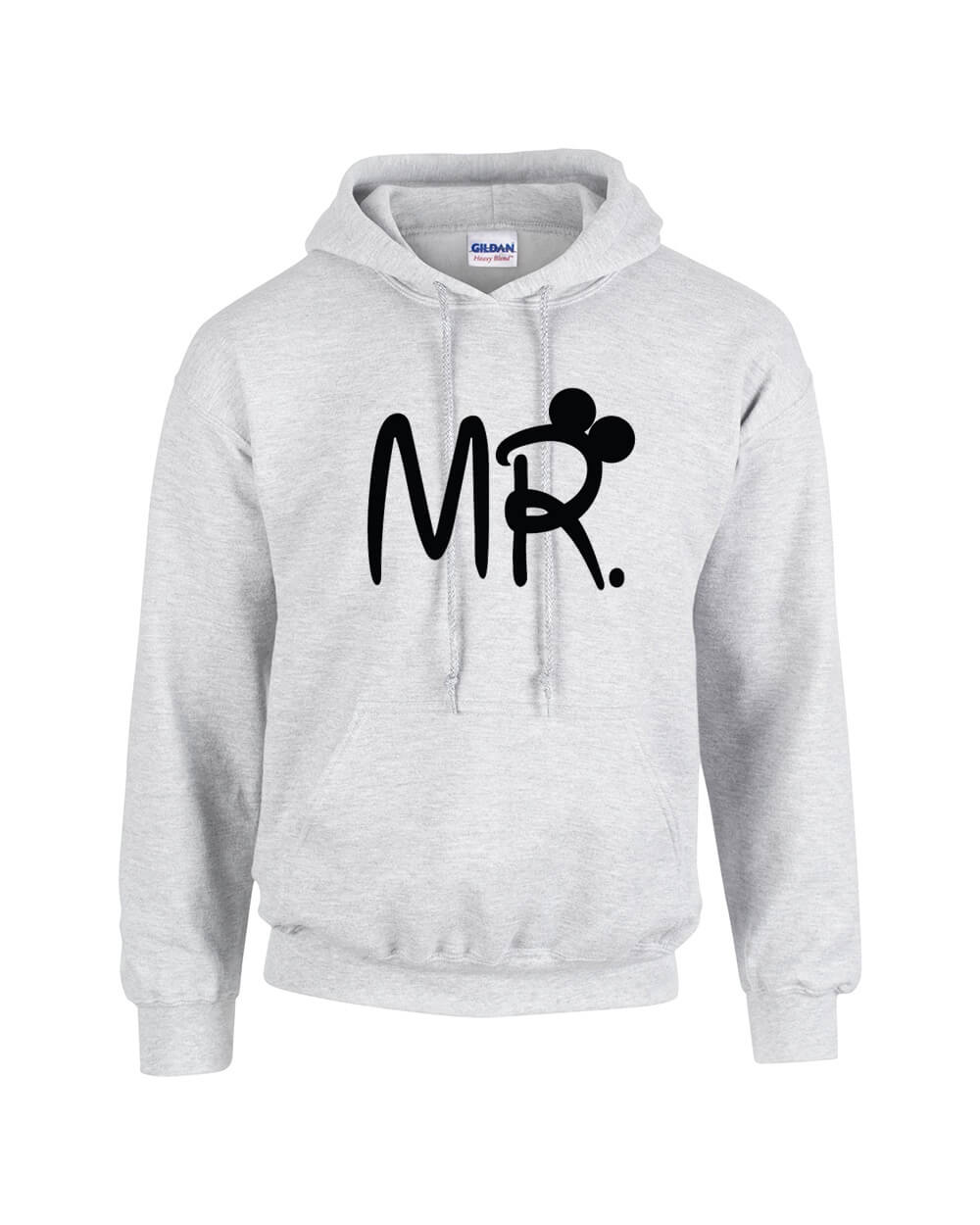 Voor de dames is de Mrs hoodie bedrukt met de Mickey oren en rode strik en voor de heren natuurlijk met de Mr print. Deze leuke Mr en Mrs hoodies zijn in verschillende kleuren te bestellen in maten vanaf S t/m XXL. ( ¹De kleur van de afgebeelde hoodie is Sport Grey )