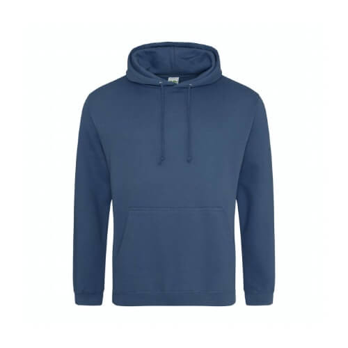 Deze College hoodie Airforce-blue heeft een kwaliteit van 280gr - 80% ringgesponnen katoen en 20% polyester.In de ruime buidelzakken zit een verborgen opening om een draad van een koptelefoon of oortjes doorheen te halen zodat de draad niet meer zichtbaar is aan de buitenkant. Zo kan je vrij blijven bewegen en nergens met de draad achter blijven haken. De capuchon is dubbel gevoerd en de koorden om de capuchon mee aan te snoeren hebben de zelfde kleur als de hoodie. Netjes afgewerkt met dubbele stiksels voor extra stevigheid en de manchetten en zoom zijn geribbeld. Leverbaar vanaf maat XS t/m 3XL en in 56 zeer mooie kleuren.