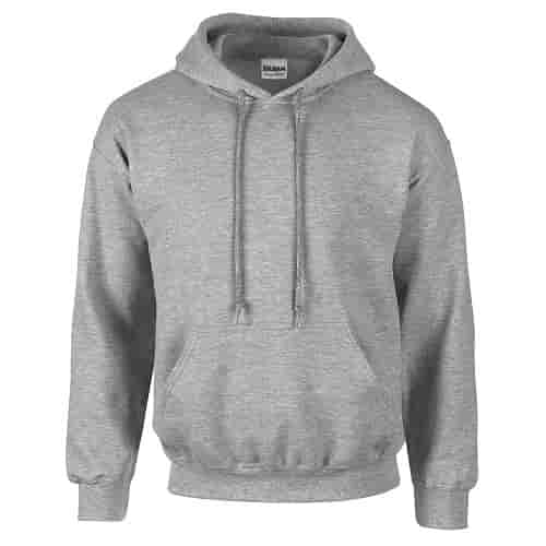 Een unisex Sport Grey Gildan hoodie voor jong en oud. Is leverbaar vanaf maat S t/m XXL en heeft een kwaliteit van 230 gram / 50% katoen - 50% polyester  Heeft comfortabele ruime buidel zakken en is afgewerkt met dubbel gestikte naden. Het trekkoord heeft dezelfde kleur als de hoodie en de machet en zoom zijn elastisch.