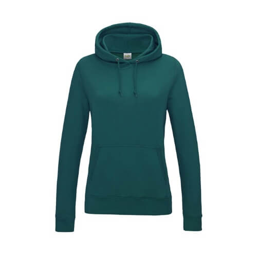 Een Girlie College hoodie Jade met een mooie kwaliteit van 280gr 80% katoen 20% polyester. Heeft ruime buidel zakken met in de zak een opening om hier een draad van een koptelefoon of oortjes doorheen te halen zodat de draad niet meer zichtbaar is. De capuchon is dubbel gevoerd en de trekkoorden om de capuchon mee aan te snoeren hebben dezelfde kleur als de hoodie. In de kraag zitten 2 lusjes om de oortjes aan op te hangen. Deze Jade College hoodie is afgewerkt met dubbele stikdraden en een geribbelde manchet en zoom voor extra stevigheid.Te bestellen vanaf maat XS t/m XXL en in 25 zeer mooie kleuren.