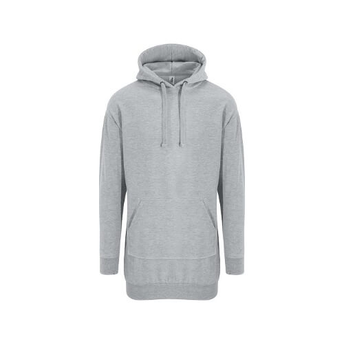 De Hoodie dress in de kleur Heather grey van AWDis is een extra lange hoodie. De hoodie heeft een kwaliteit van 280gr 75% katoen - 25% polyester. Heeft ruime zakken en een capuchon met meegekleurede trekkoorden om de capuchon mee aan te snoeren. Leverbaar vanaf maat XS t/m XXL.