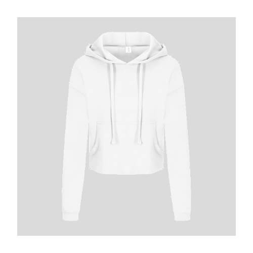 Deze korte dames hoodie in de kleur Arctic White mag niet ontbreken in je garderobe. Heeft een kwalitiet van 280gr - 80% katoen en 20% polyester. Heeft buidelzakken en een capuchon met meegekleurde trekkoorden. Leverbaar vanaf maat XXS t/m XL.