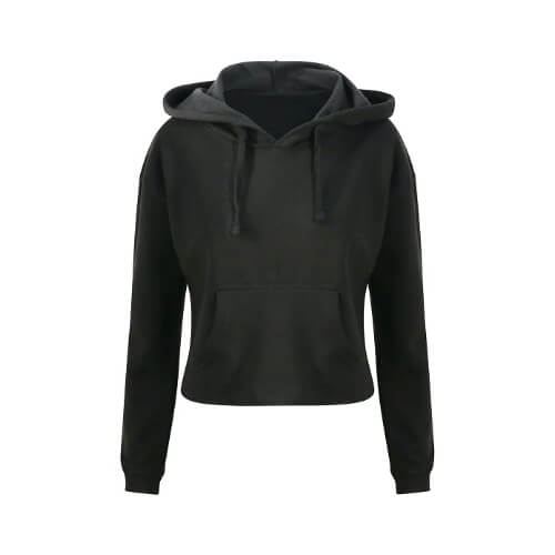 Deze korte dames hoodie in de kleur Jet Black mag niet ontbreken in je garderobe. Heeft een kwalitiet van 280gr - 80% katoen en 20% polyester. Heeft buidelzakken en een capuchon met meegekleurde trekkoorden. Leverbaar vanaf maat XXS t/m XL.
