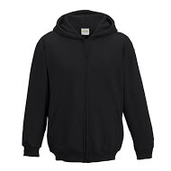 Deze zwarte sweater voor kinderen met een volledige ritssluiting en dubbel gevoerde capuchon om lekker in weg te kruipen. Om de kans op verstikking te voorkomen hebben deze zoodies geen trekkoorden om de capuchon mee aan te snoeren. De ruime en warme buidelzakken hebben in de rechterzak een opening om hier een draad van een koptelefoon / oortjes doorheen te halen. Zo kan het kind zich vrij blijven bewegen zonder ergens achter te blijven haken. De manchetten en zoom zijn geribbeld en voor extra stevigheid afgewerkt met dubbel gestikte details. Te bestellen vanaf maat XS t/m XL.