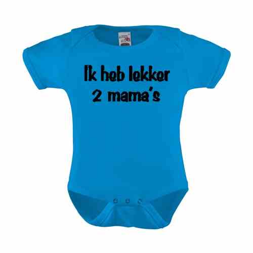 Wat zal het kind die deze romper draagt een gelukkig kind zijn. Deze Ik heb lekker 2 Mama's romper heeft een kwalteit van 100% katoen en is te bestellen in 6 verschillende kleuren.