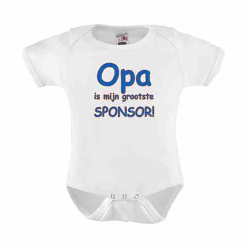 Elk kind zou een Opa willen hebben die zijn grootste sponsor is. Maar mocht Opa er even niet bij stil staan dan kan je hem met de romper hier aan helpen herinneren. De romper heeft een kwaliteit van 100% katoen en is leverbaar in 6 mooie kleuren.