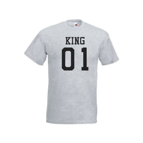 Deze print komt het beste tot zijn recht als je het besteld als een setje. De Queen print voor de dame en de King print voor de heer. Wij bedrukken deze print op een Fruit of the Loom t-shirt van 190gr 100% katoen met een ronde hals en korte mouwen. Geef aan of je de print op de voorkant of achterkant bedrukt wilt hebben en of de letters van de print wit of zwart moeten zijn.
