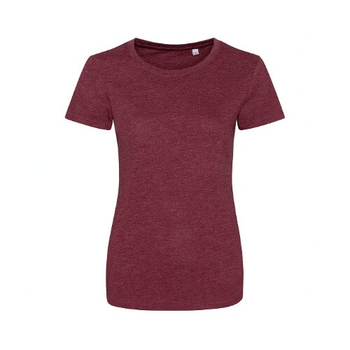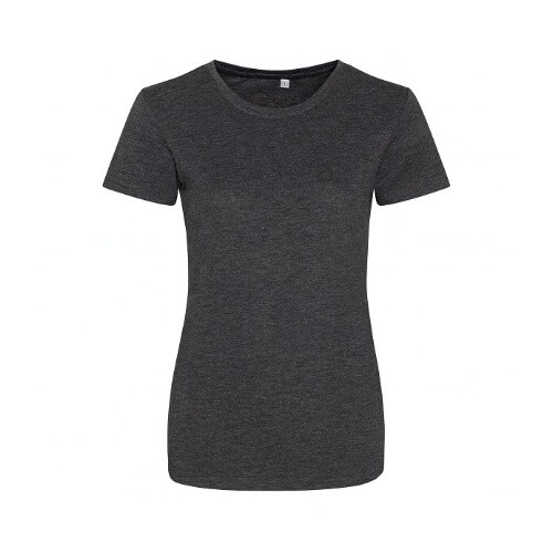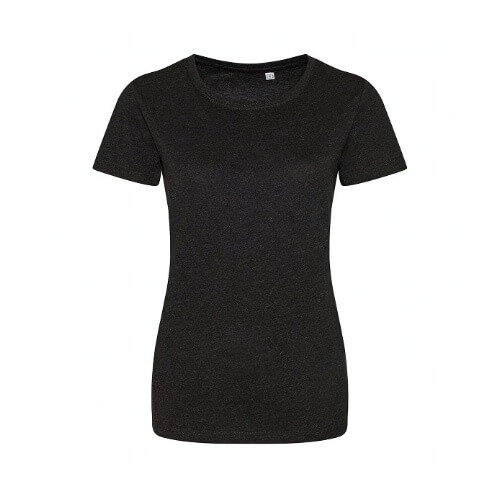 Dit dames t-shirt is samengesteld uit 3 soorten stof voor extra comfort. Een kwaliteit van 160gr - 50% polyester / 25% viscose / 25% katoen. De kleur Heather black 160gr - 40% viscose / 40% katoen / 20% polyester. De mouwen en onderzoom zijn afgewerkt met dubbel gestikte naden. heeft een gebiesde rondel hals met ribstructuur. Leverbaar in 8 kleuren vanaf maat XS t/m XXL.