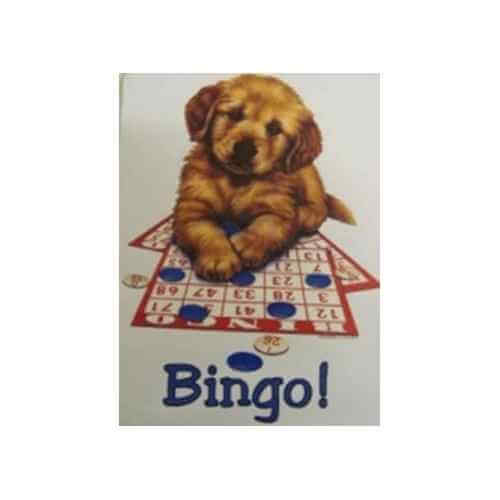 Schattig hondje met bingokaarten bedrukt op een t-shirt met ronde hals en korte mouwen. De t-shirts hebben een kwaliteit van 100% katoen en zijn leverbaar t/m naat XXL. Maak een keuze uit 27 kleuren.