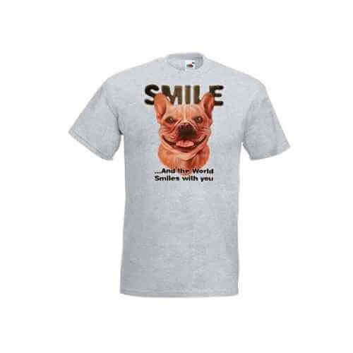Een lief hondje met een brede glimlach bedrukt op een t-shirt van 100% katoen. Deze bedrukte t-shirts hebben een ronde hals en korte mouwen. Zijn leverbaar vanaf maat S t/m XXL en u heeft keuze uit vele mooie kleuren.