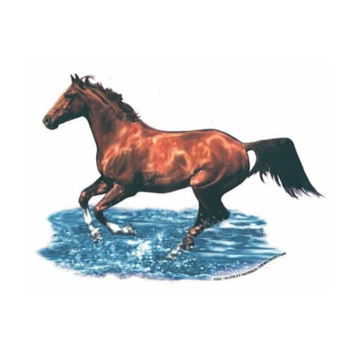 Een bruin rennend paard bedrukt op een shirt van 100% katoen met een ronde hals en korte mouwen. Deze shirts zijn leverbaar in diverse kleuren en de maten lopen vanaf S t.m XXL.
