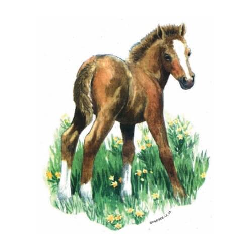 Een schattig veulentje bedrukt op een t-shirt. Deze shirts zijn te bestellen in diverse mooie kleuren en hebben een kwaliteit van 190gr 100% katoen. Een ronde hals en korte mouwen en zijn leverbaar vanaf maat S t/m XXL.