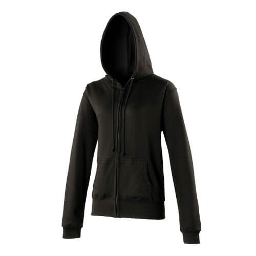 Deze dames Zoodies van AWDis hebben een volledige metalen YKK ritssluiting. Heeft een kwaliteit van 280gr 80% katoen / 20% polyester ( Heather grey 75% katoen / 25% polyester ) en is afgewerkt met een geribbelde manchetten en zoom. Heeft ruime steekzakken met in de rechterzak een opening om een draad van een koptelefoon doorheen te halen. De oorlussen gebruikt u om de oortjes aan op te hangen. Het trekkoord is in dezelfde kleur mee gekleurd. Deze zoodies zijn leverbaar vanaf maat XS t/m XL