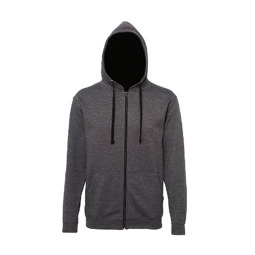 Deze Varsity zip zoodie in de kleur Charcoal / Jet black heeft een volledige ritssluiting en heeft een kwaliteit van 280 gram - 80% katoen en 20% polyester. Dekleur Heather grey 75% katoen / 25% polyester en Charcoal 52% katoen / 48% polyesterHeeft ruime comfortabele zakken met in de zak een verborgen opening om een koptelefoon draad doorheen te halen. In de kraag zitten 2 lussen om de oortjes aan te hangen zodat je nooit meer hoeft te zoeken als je ze in wilt doen.Het trekkoord heeft een contrast kleur. Deze Charcoal Jet black zoodie met ritssluiting is te bestellen vanaf maat S t/m XXL.